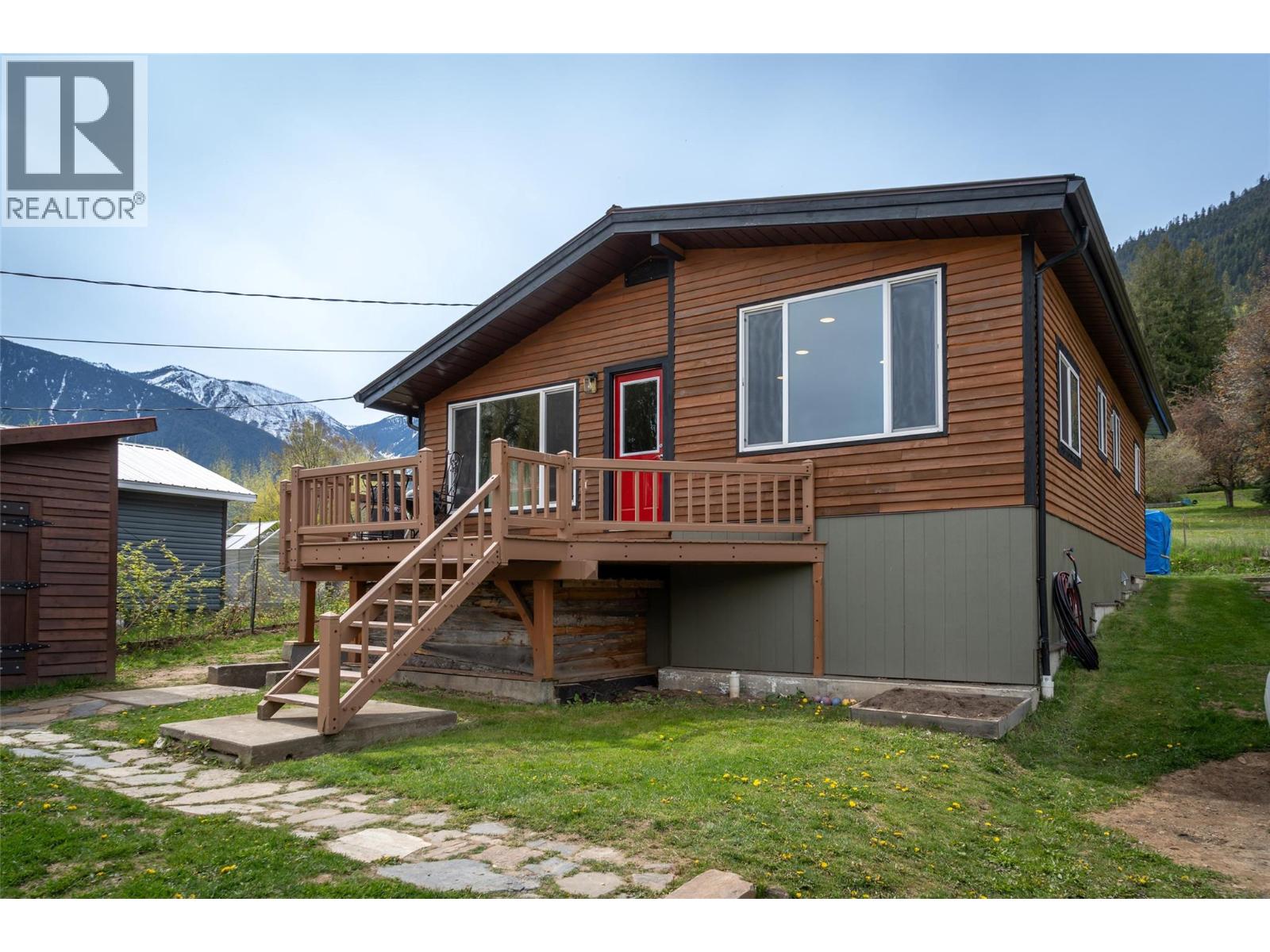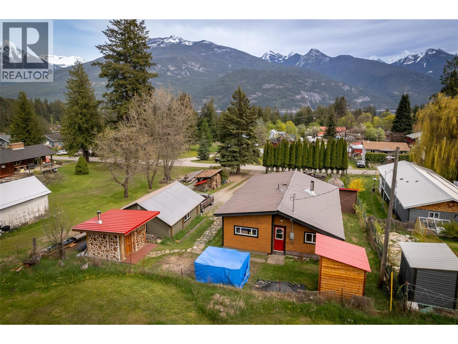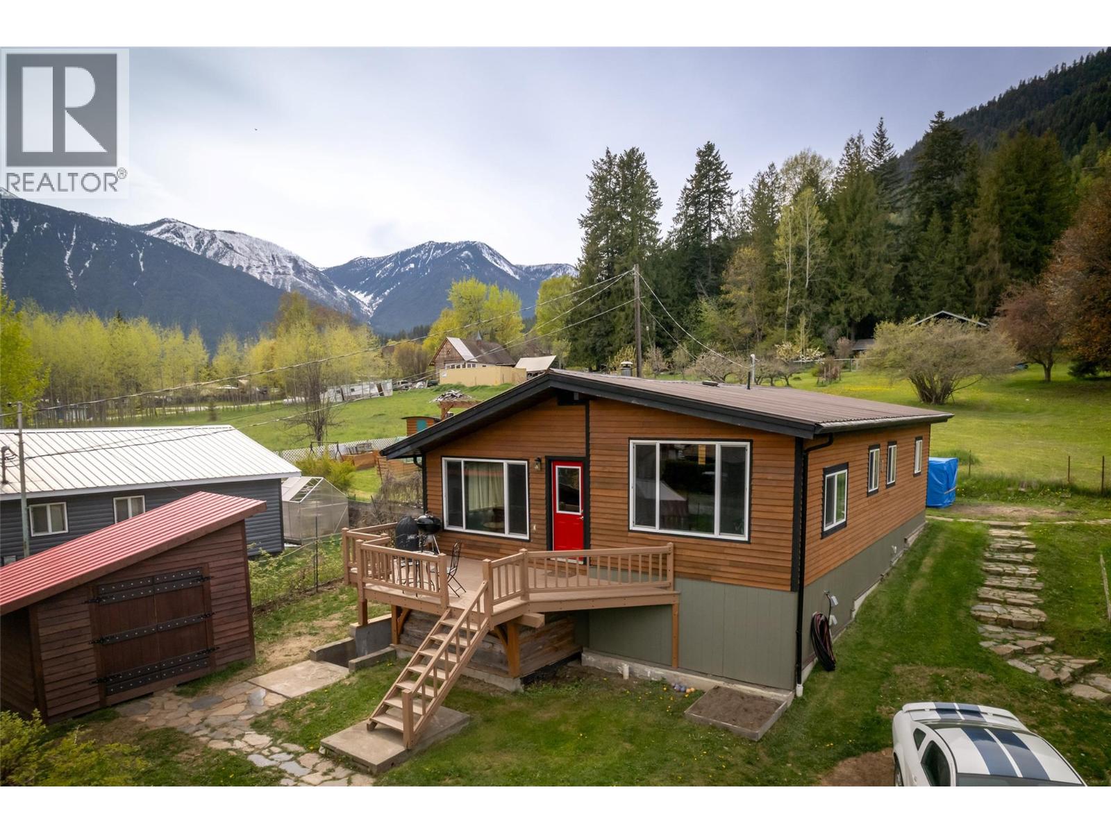 Located in upper Kaslo, is this fully renovated 2-bedroom, 1-bathroom home surrounded by stunning mountain vistas. Bathed in sunlight, the large yard provides a healthy amount of garden space, a woodshed, a cordwood constructed sauna and a detached double-car garage. Positioned to overlook the mostly level private yard, the house features a timber frame deck—an ideal spot for soaking in the views and entertaining guests. Inside, the home reveals its charm through careful renovation, showcasing custom details. A tiled hallway from the back entrance leads to two bedrooms and a full bath with convenient laundry facilities. The open-concept living, kitchen, and dining areas is the heart of the home. The brand new BlazeKing wood stove provides warmth for those winter days and the large windows provide natural light and views of Mt Loki and the Purcell Mountain range. The finished partial basement can be used as a summer kitchen, a games room or a separate guest bedroom with a ton of storage opportunities in the rest of the basement. The home is walking distance to essential amenities like shopping, health centre, school and recreational trails for walking/hiking & biking. Kaslo BC is located on Kootenay Lake about an hour north of Nelson BC in the Kootenays. Offering a lifestyle that allows you to slow down and enjoy the natural recreational opportunities the Kootenays are known for. (id:4069)