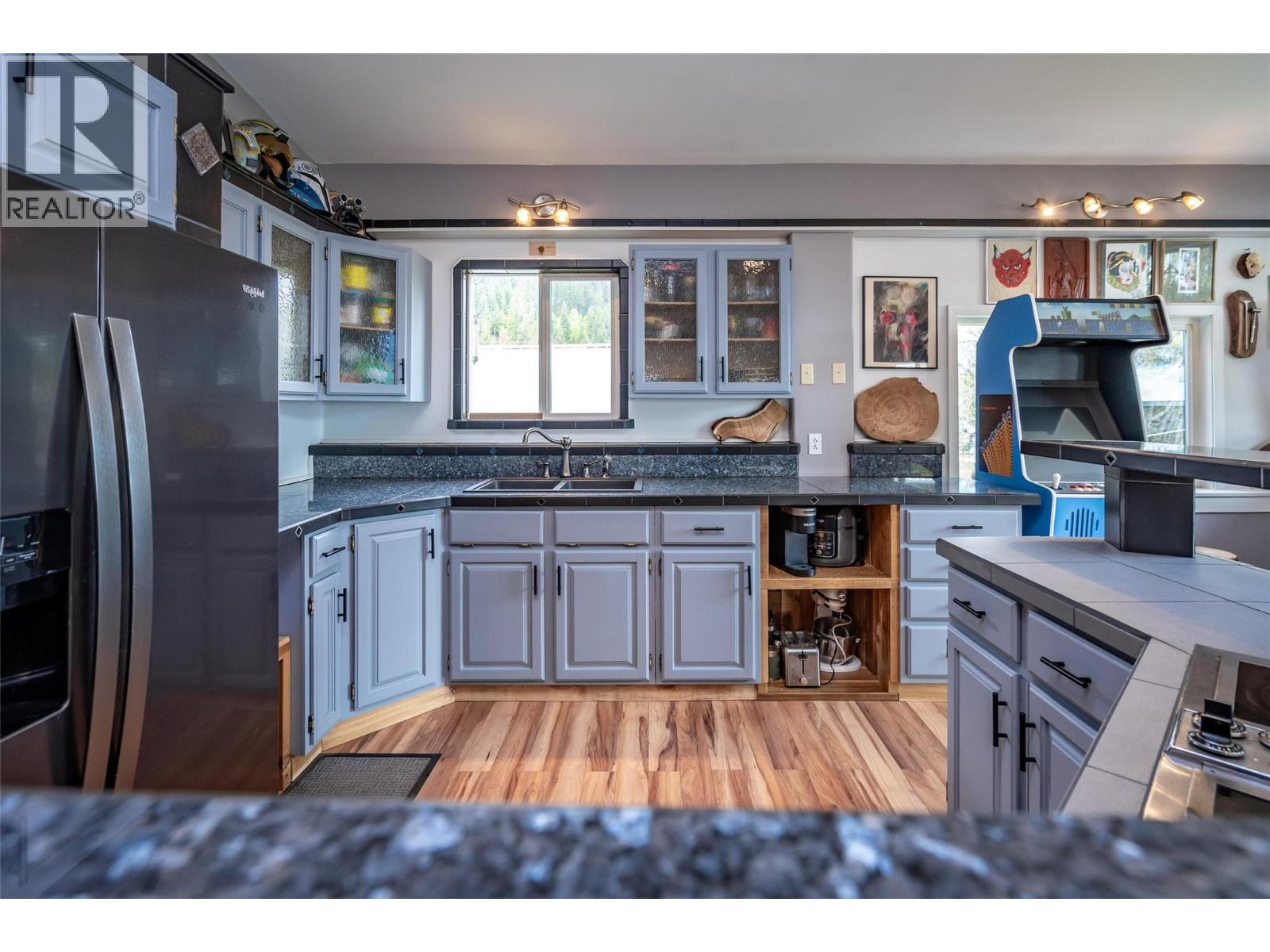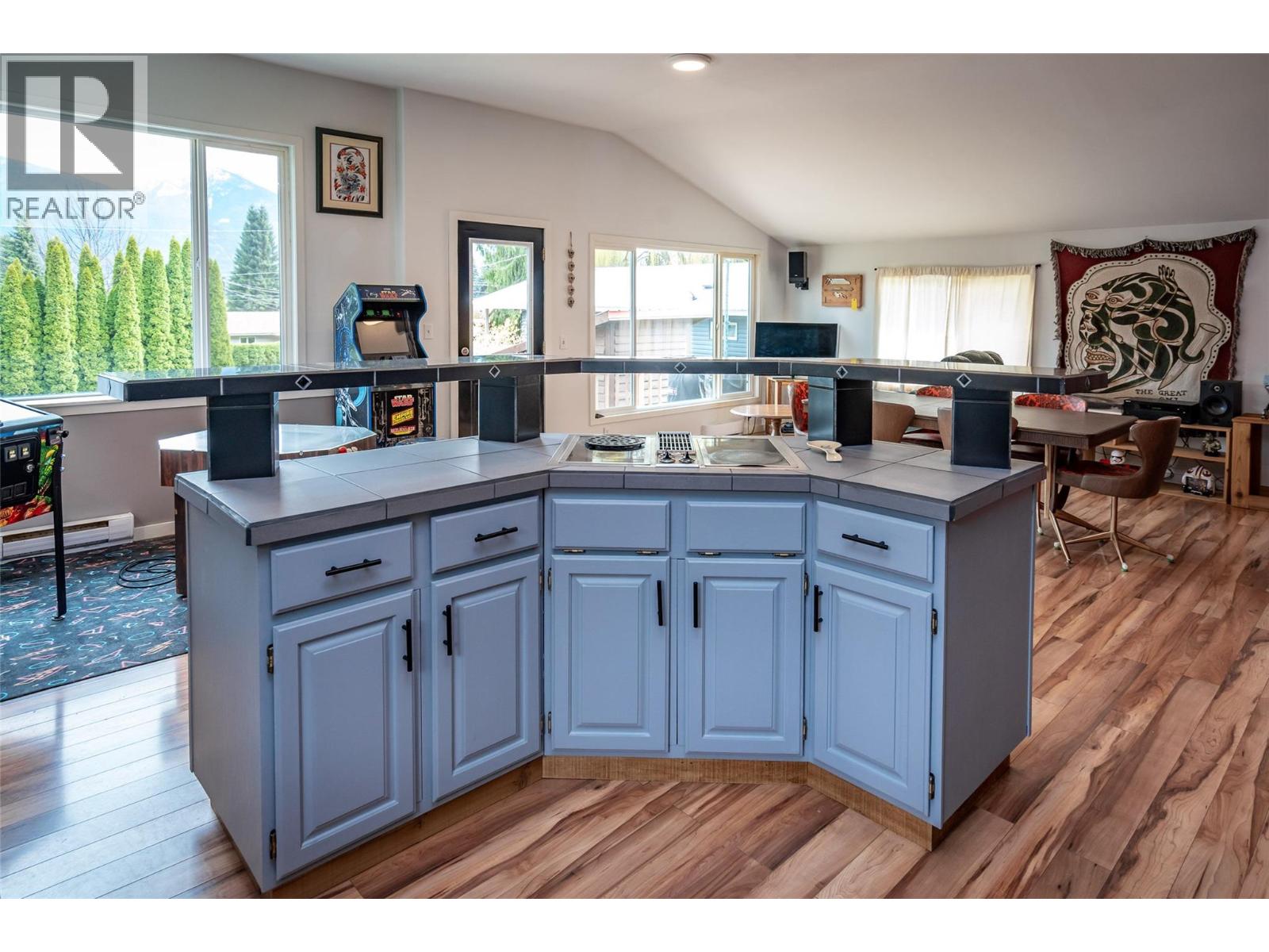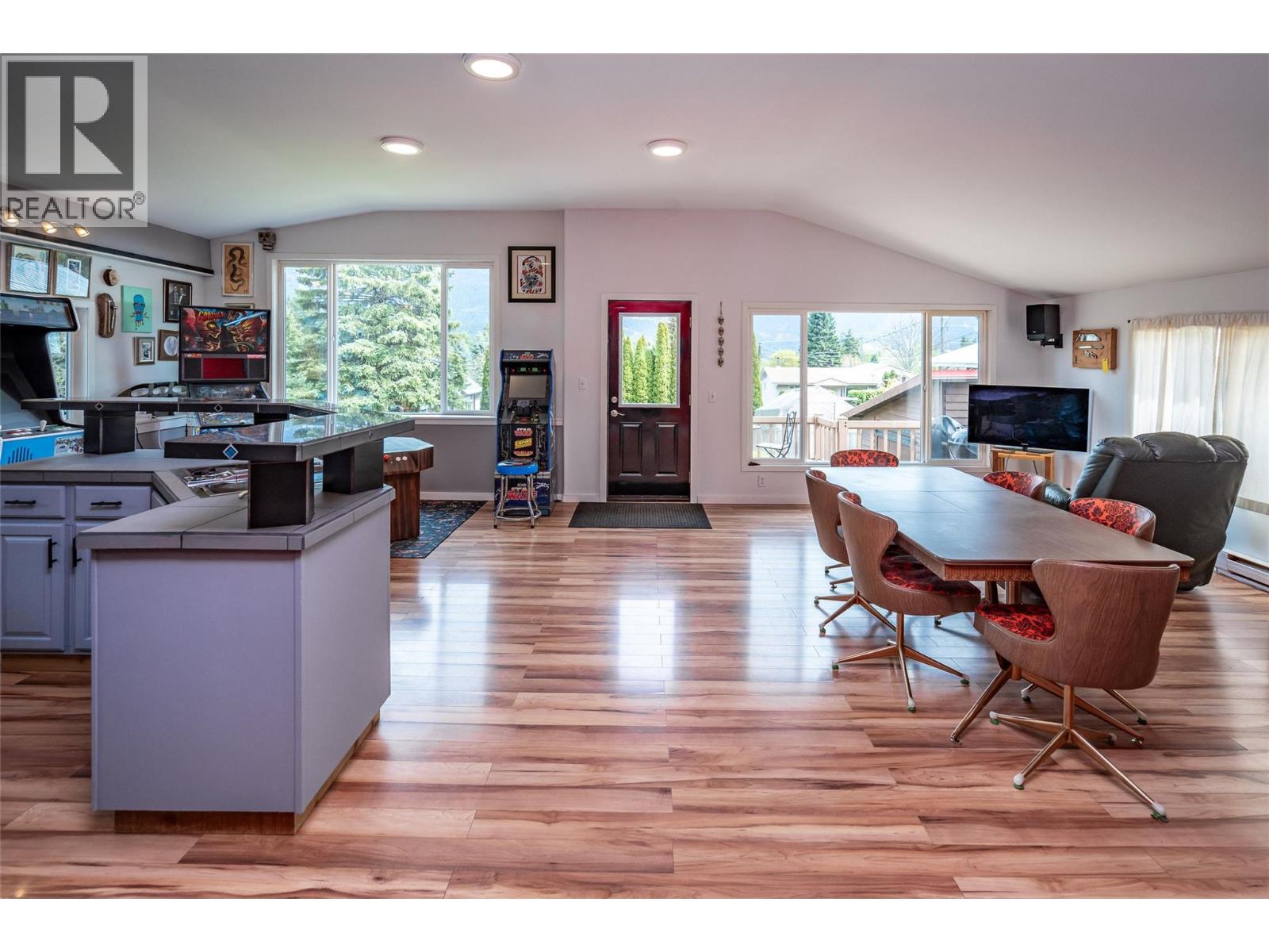 Located in upper Kaslo, is this fully renovated 2-bedroom, 1-bathroom home surrounded by stunning mountain vistas. Bathed in sunlight, the large yard provides a healthy amount of garden space, a woodshed, a cordwood constructed sauna and a detached double-car garage. Positioned to overlook the mostly level private yard, the house features a timber frame deck—an ideal spot for soaking in the views and entertaining guests. Inside, the home reveals its charm through careful renovation, showcasing custom details. A tiled hallway from the back entrance leads to two bedrooms and a full bath with convenient laundry facilities. The open-concept living, kitchen, and dining areas is the heart of the home. The brand new BlazeKing wood stove provides warmth for those winter days and the large windows provide natural light and views of Mt Loki and the Purcell Mountain range. The finished partial basement can be used as a summer kitchen, a games room or a separate guest bedroom with a ton of storage opportunities in the rest of the basement. The home is walking distance to essential amenities like shopping, health centre, school and recreational trails for walking/hiking & biking. Kaslo BC is located on Kootenay Lake about an hour north of Nelson BC in the Kootenays. Offering a lifestyle that allows you to slow down and enjoy the natural recreational opportunities the Kootenays are known for. (id:4069)